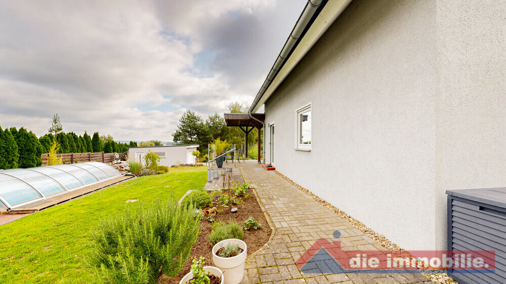 Das ca. 1.100 m² große Grundstück lässt keine Wünsche offen: Doppelgarage, ein direkt ans Haus angebautes Carport, das flexibel auch anders genutzt werden kann, sowie ein Pool im Garten sorgen für zusätzlichen Komfort und Freizeitwert.
