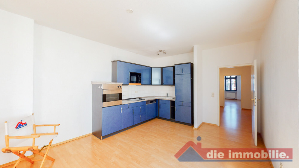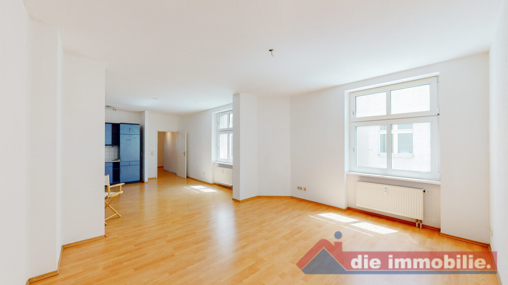 Die Wohnung befindet sich im vierten Obergeschoss des Hauses und verteilt sich über 3 Zimmer, Küche mit großem Essbereich und Einbauküche, sowie Badezimmer auf ca. 107 m² Wohnfläche. Vom Flur aus Zugang zu Zimmer 1 + 2, Badezimmer mit Wanne und Waschmaschinenanschluss, sowie der Küche mit opulenten Wohn- und Essbereich. Von dort aus Zugang zu Zimmer 3. Badezimmer gefliest. Alle übrigen Räume sind mit Laminat ausgestattet.