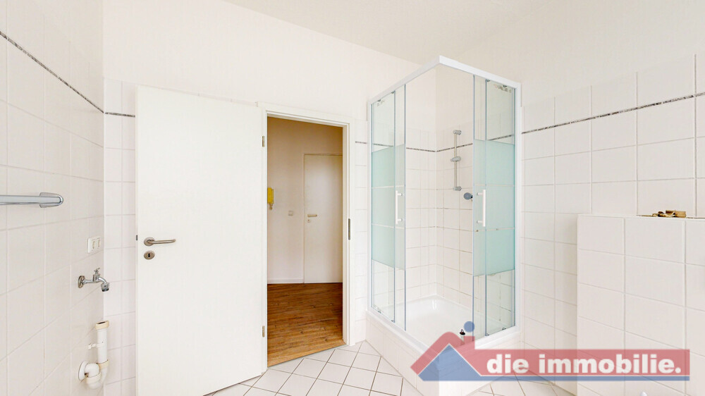 Vom Flur aus sind Bad, Schlafzimmer und Wohnzimmer erreichbar. Zugang zur Küche über das Wohnzimmer. Küche, Bad und WC mit Fliesen - alle übrigen Räume sind mit Laminat ausgestattet. Bad mit Fenster, Dusche und Waschmaschinenanschluss ausgestattet.