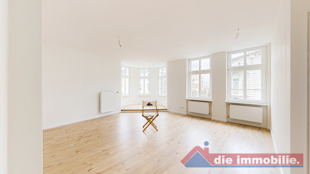 Im dritten Obergeschoss des Hauses gelegen verteilt sich die Wohnung über 2 Zimmer auf ca. 83m² Wohnfläche.