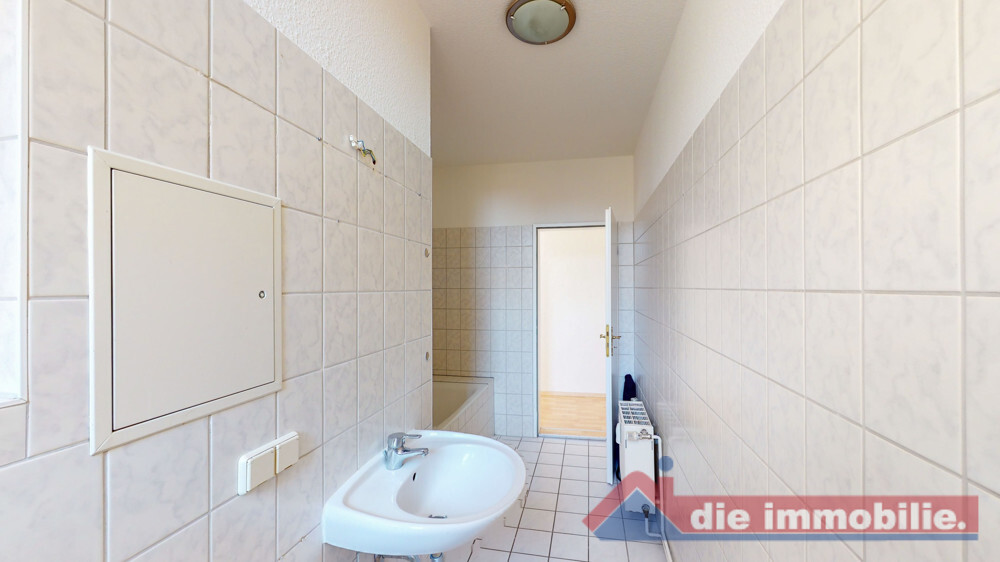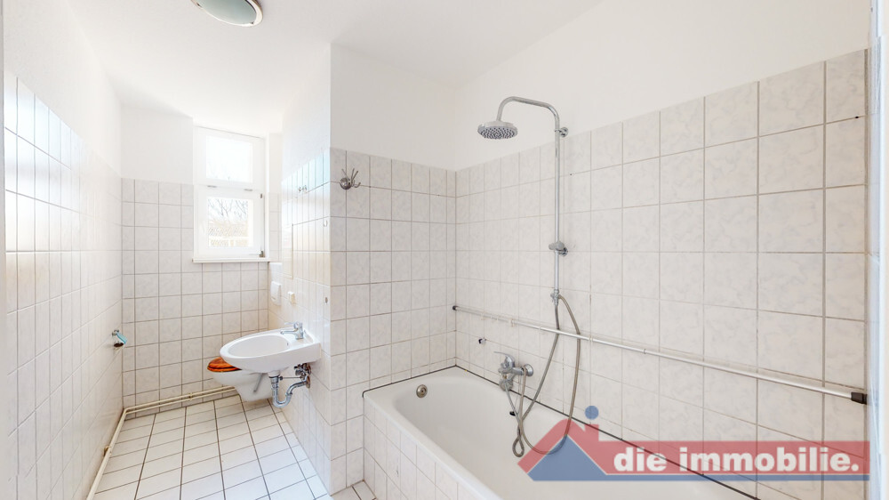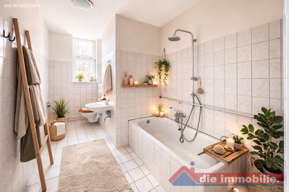 - Badezimmer gefliest, mit Fenster und Badewanne