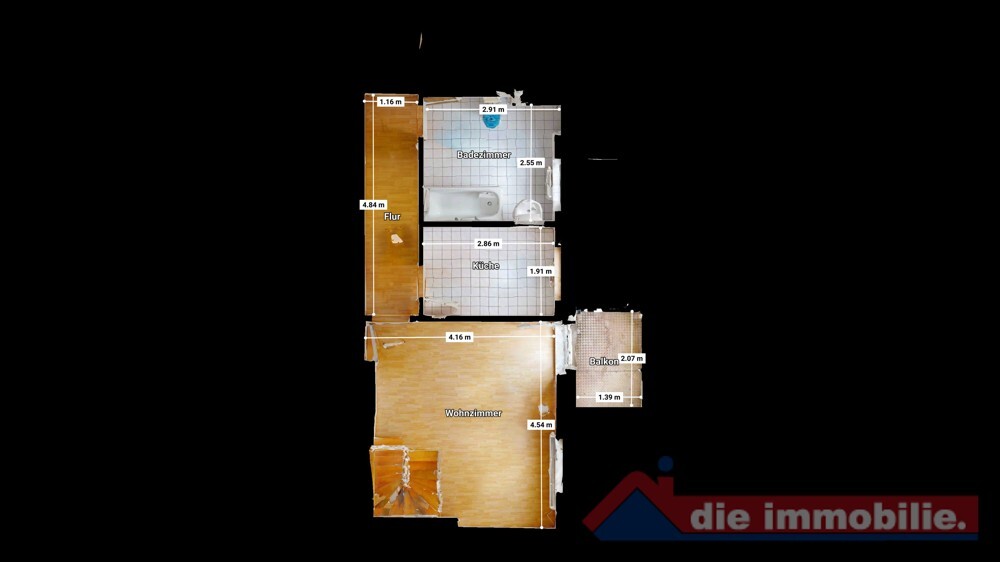Die Wohnung befindet sich im 2. Obergeschoss des Hinterhauses und verteilt sich über 3 Zimmer auf zwei Etagen. In der unteren Etage finden Sie ein Badezimmer mit Fenster, Küche, Wohnzimmer mit Balkon.