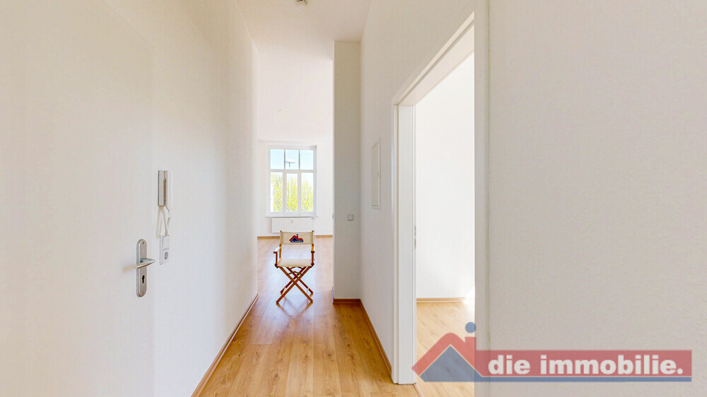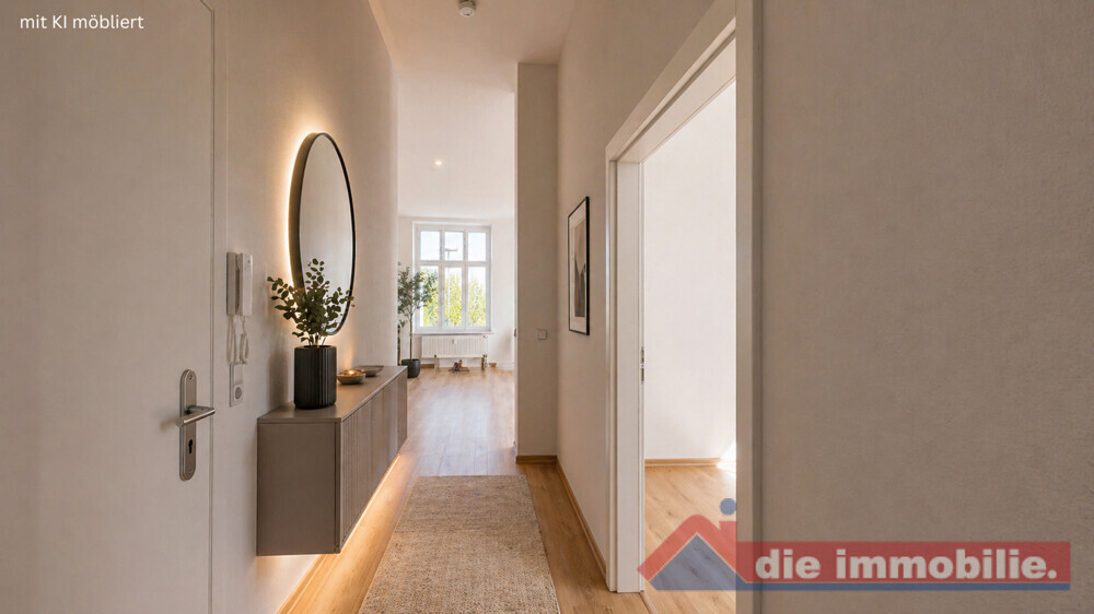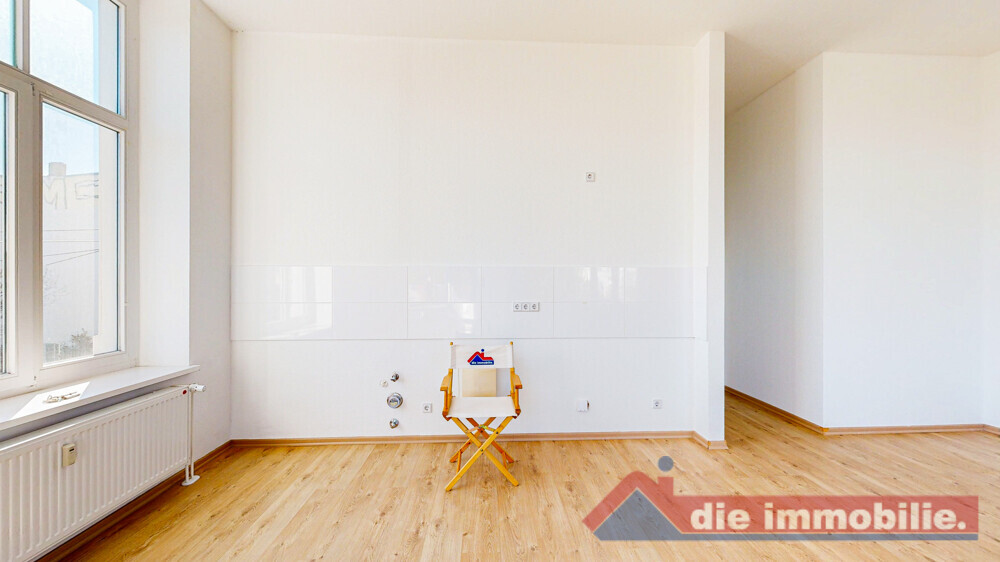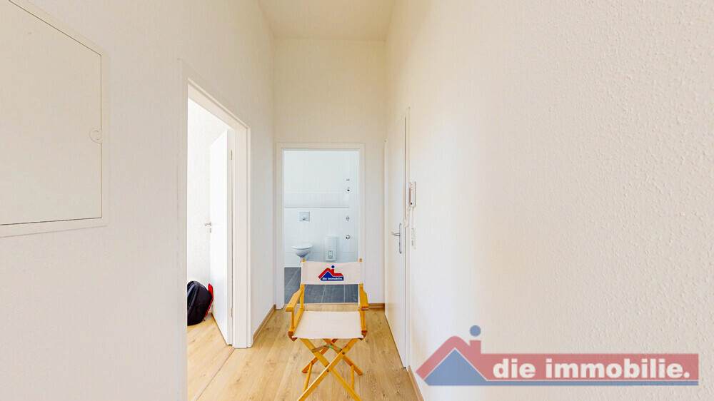 Vom zentralen Flur aus sind alle Räume bequem erreichbar. Der offen gestaltete Wohn- und Essbereich mit integrierter Küche bildet das Herzstück der Wohnung und schafft eine moderne, kommunikative Wohnatmosphäre – ideal für Singles oder Paare.